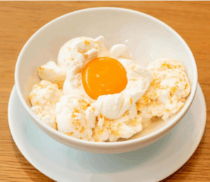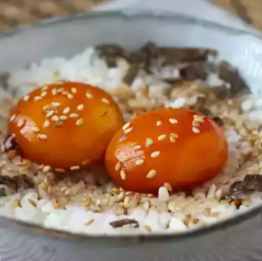 Como funciona: a gema crua é imersa por 6 a 12 horas numa mistura de shoyu, miso e saquê num processo chamado de cura. Ela ficará firme por fora e cremosa por dentro, com sabor umami profundo. Umami é o quinto tipo de sabor identificado pelo paladar humano. Os outros são doce, salgado, azedo e amargo,