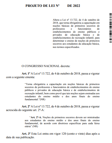 A proposta altera a Lei 13.722 de 2018, conhecida como Lei Lucas, que já obriga a capacitação de professores e funcionários de escolas públicas e privadas, além de espaços de recreação infantil. Com a mudança, os próprios alunos do ensino médio e dos anos finais do ensino fundamental também passarão a receber orientações sobre como agir em situações de emergência.