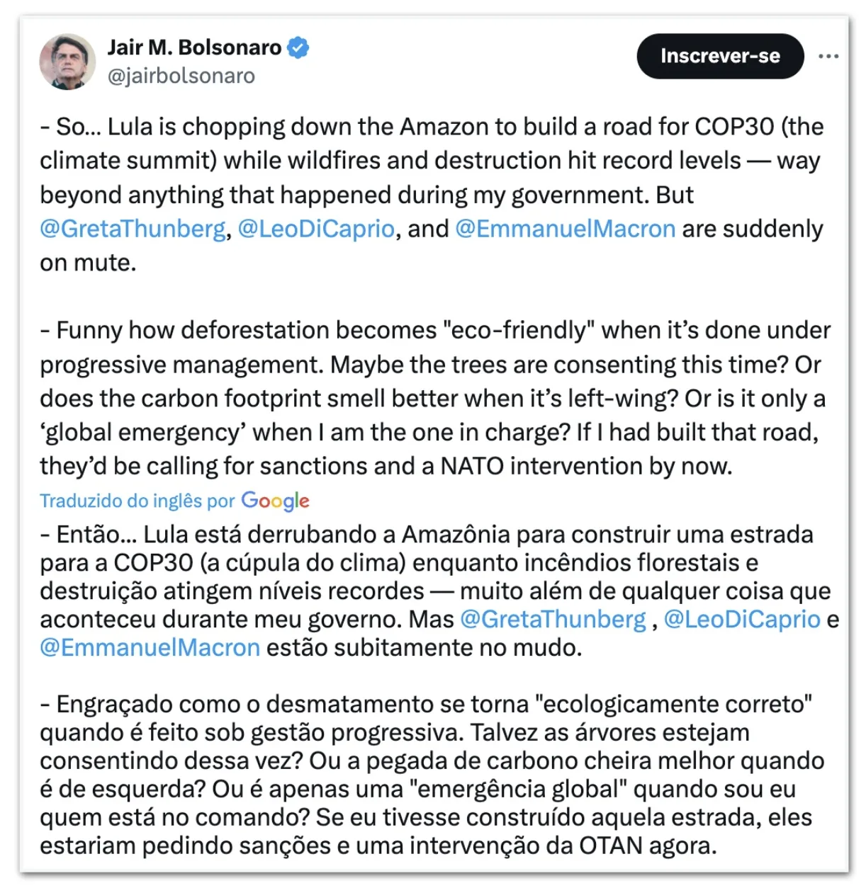 Bolsonaro cobra Greta, Leonardo DiCaprio e Emmanuel Macron sobre desmatamento na Amazônia