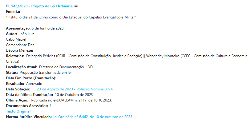 O padrão se manteve nos anos seguintes. Em 2020, surgiram iniciativas como o reconhecimento do cultivo de abacaxi de Novo Remanso como patrimônio cultural. Em 2021, o deputado propôs o Dia Estadual de orações e jejum.