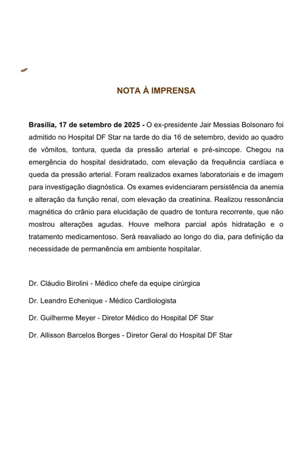 Michelle atualiza estado de saúde de Jair Bolsonaro após internação