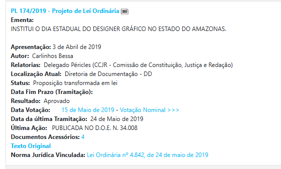 Entre os exemplos estão a criação de dias estaduais para designer gráfico, designer de interiores, escotismo e parteiras, além de uma sequência de leis que transformam eventos e locais em patrimônios culturais. Ainda que legítimas do ponto de vista cultural, essas propostas pouco dialogam com os grandes assuntos de interesse do Amazonas, como saúde, infraestrutura, segurança e desenvolvimento econômico.