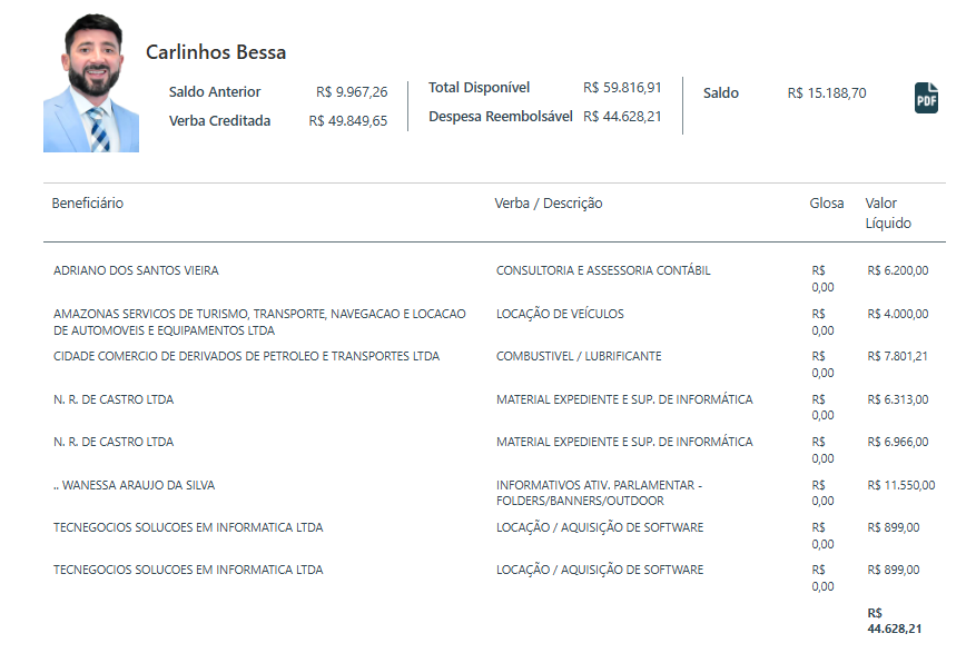 O parlamentar atè que mantém uma presença institucional e domínios dentro do que o mandato propõe, mas ainda não conseguiu transformar volume em protagonismo efetivo. Entre números elevados, o retrato que se forma é de um mandato que investe alto para se manter visível, mas que ainda busca relevância concreta no centro das decisões políticas do Amazonas.