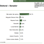 O levantamento também analisou a corrida para o Senado no Amapá. No cenário espontâneo, esposa do ex-prefeito de Macapá Dr. Furlan, Rayssa Furlan (Podemos), aparece na frente com 15,2% das intenções de voto. Em seguida aparecem o senador Randolfe Rodrigues com 8,9%, o ex-senador Lucas Barreto com 6,4% e o senador Davi Alcolumbre com 3,4%.