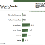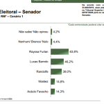 O comparativo com o levantamento realizado em outubro de 2025 mostra crescimento de Rayssa Furlan, que passou de 60,9% para 63,8%. Lucas Barreto subiu de 45,1% para 46,2%, enquanto Randolfe Rodrigues oscilou de 38,6% para 39,0%. Waldez Góes caiu de 17,2% para 14,8%, e Acácio Favacho avançou de 12,5% para 14,3%.