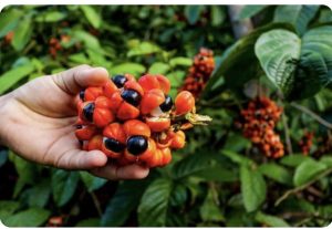 O guaraná pode ser consumido de várias formas, como em pó, xarope, bastão e até em refrigerantes, sendo produzido principalmente no Amazonas e na Bahia.