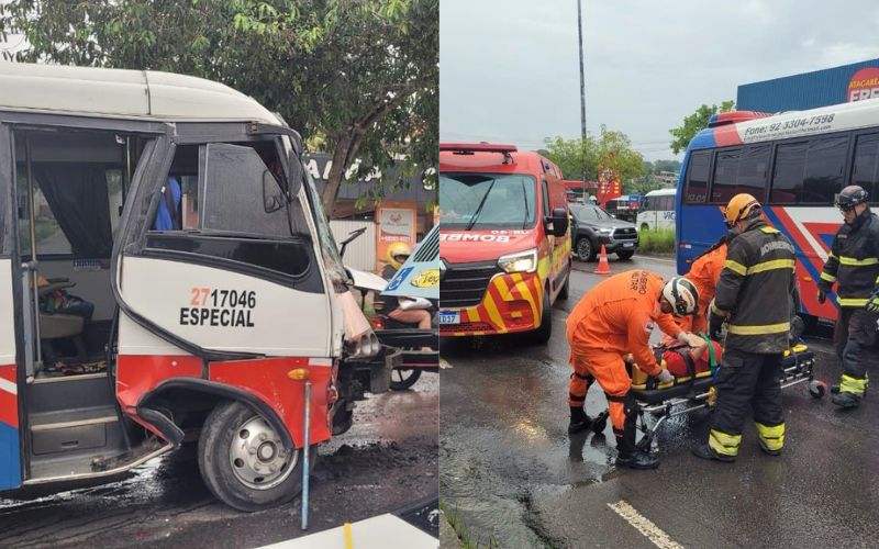 Dez pessoas foram resgatadas após um acidente entre um micro-ônibus e um ônibus do transporte público municipal na manhã desta quinta-feira (26/2), na avenida Margarita, bairro Cidade Nova, zona Norte de Manaus. Segundo o Corpo de Bombeiros Militar do Amazonas, as vítimas ficaram presas às ferragens do micro-ônibus após a colisão, cuja causa ainda não foi oficialmente divulgada.