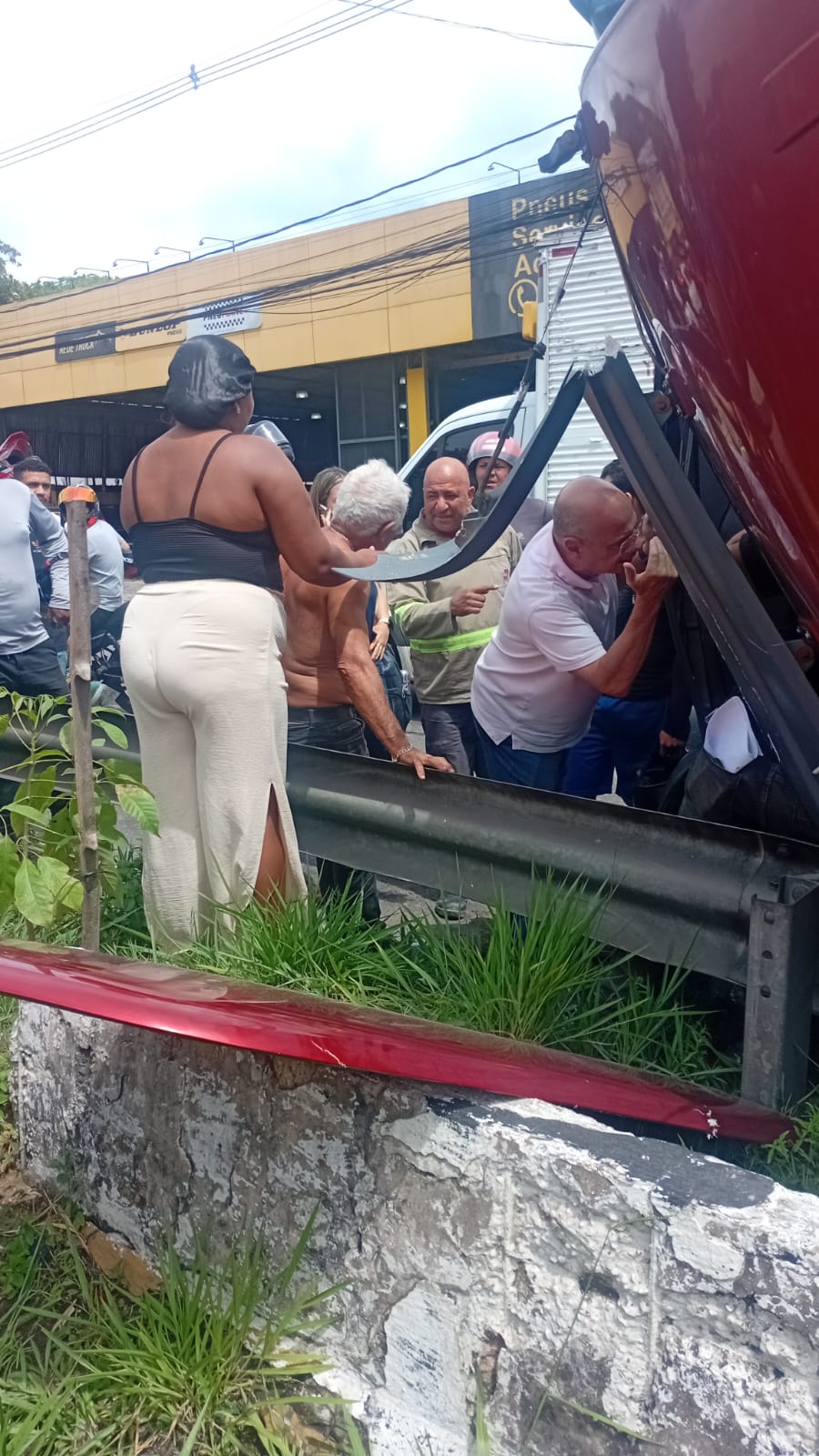 O motorista, identificado como Pedro, de 69 anos, foi socorrido pela população e apresentava escoriações na cabeça, mas permanecia consciente aguardando atendimento. Equipes do Serviço de Atendimento Móvel de Urgência (Samu) e do Corpo de Bombeiros foram acionadas ao local para prestar socorro.