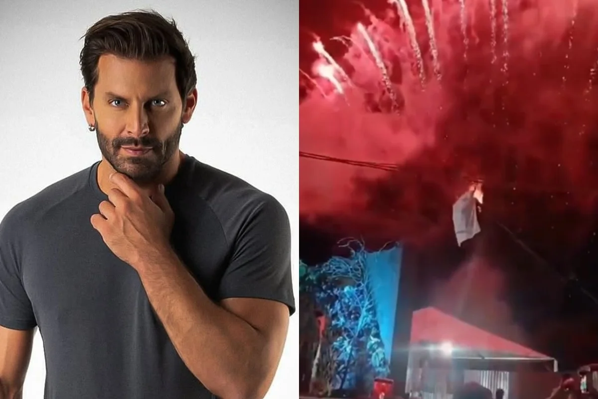 Imagens divulgadas pelo Portal LeoDias mostram o momento em que o artista é elevado e as chamas começam. Apesar da tensão, ele seguiu com a apresentação. No fim da gravação, Castelli apareceu ao lado de outros atores e foi aplaudido pelo público.