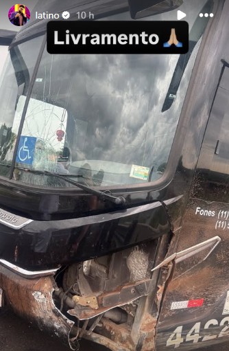 Nas redes sociais, Latino afirmou que não usava cinto de segurança no momento da colisão e bateu a cabeça no teto do ônibus.