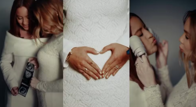 Na mensagem, as duas comemoraram a nova fase da família e escreveram que agora estão vivendo a alegria de esperar o filho.