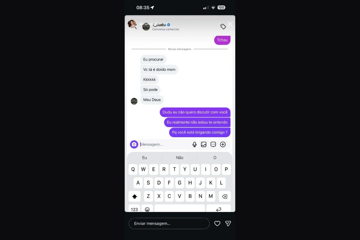 “Olha o que você fez, troquei ideia de boa com você. Sacanagem demais. Você foi muito traíra”, escreveu Dudu na conversa divulgada.