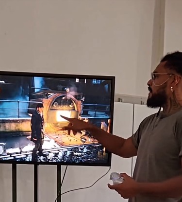No vídeo, o educador Wesley Bernardo utiliza cenas do jogo para explicar a Revolução Industrial, mostrando fábricas, máquinas a vapor e as condições de trabalho no século XIX. Durante a aula, ele destaca problemas como ambientes insalubres e a exploração de trabalhadores, incluindo crianças.