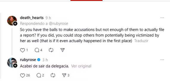 Segundo Rose, o episódio aconteceu na Spicy Market Nightclub, quando ela tinha cerca de 20 anos. Em uma série de publicações, a atriz disse que possui “imagens e testemunhas” e afirmou ter sido “alvo de manipulação psicológica” ao longo dos anos seguintes. Ela também informou que esteve em uma delegacia nesta segunda-feira (13/04) para registrar uma denúncia formal.