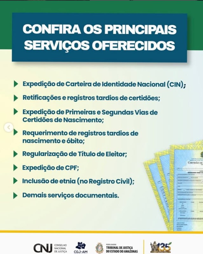 No Amazonas, o mutirão é organizado pela Corregedoria-Geral de Justiça e conta com o apoio de mais de 15 instituições parceiras, oferecendo serviços essenciais à população.