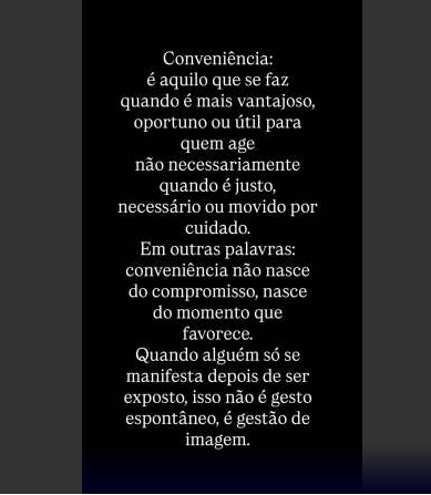 Priscila também sugeriu que Lucas estaria agindo por “conveniência”, dizendo que algumas atitudes só teriam ocorrido após a situação ganhar repercussão.